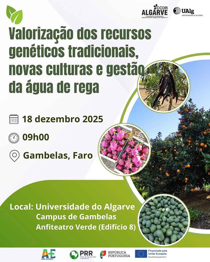 A iniciativa integra os projetos Agro + Eficiente (A+E), do Plano de Recuperação e Resiliência (PRR), e reúne especialistas e técnicos para discutir para a partilha de conhecimento e reflexão sobre estratégias de adaptação da agricultura às alterações climáticas, com enfoque na gestão eficiente da água de rega, na valorização dos recursos genéticos tradicionais e na introdução de novas culturas mais resilientes.O programa integra comunicações dedicadas à eficiência rega em contexto de alterações climáticas, ao estudo do microbioma do solo em regimes de rega deficitária, à adaptação de espécies como o feijão-cutelinho, consociada com alfarrobeira, bem como à microenxertia como técnica para a obtenção de citrinos isentos de vírus e de viroides, incluindo a apresentação de vídeos técnicos sobre a rega de abacateiros e citrinos e sobre a microenxertia das laranjeiras.