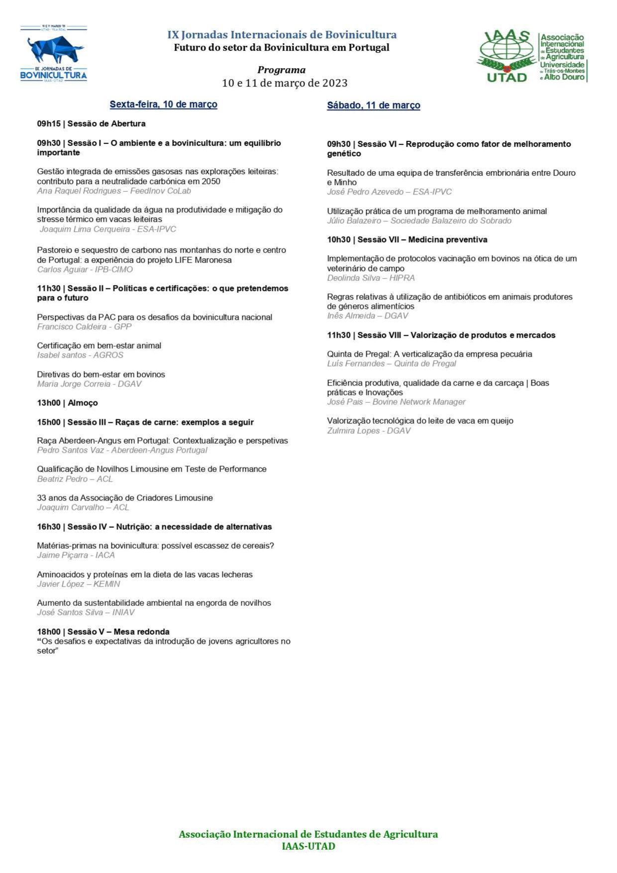 As Jornadas de Bovinicultura estão de volta com a sua IX edição, nos dias 10 e 11 de março, em Vila Real, organizado pela Associação Internacional de Estudantes de Agricultura da Universidade de Trás-os-Montes e Alto Douro.