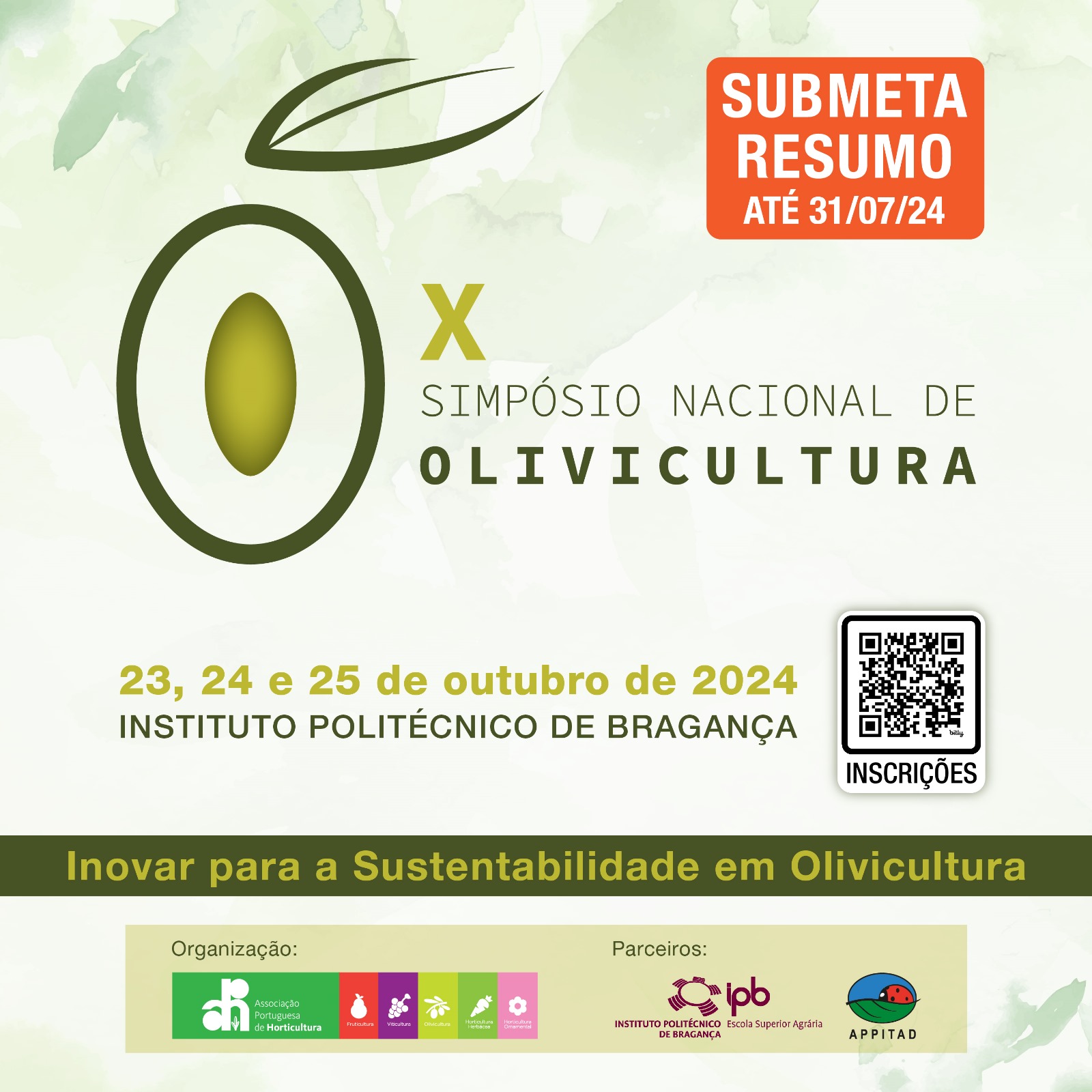 O X Simpósio Nacional de Olivicultura irá decorrer nos dias 23 a 25 de outubro de 2024 no Instituto Politécnico de Bragança. Pode submeter o resumo do seu trabalho técnico-científico até dia 31 de julho.