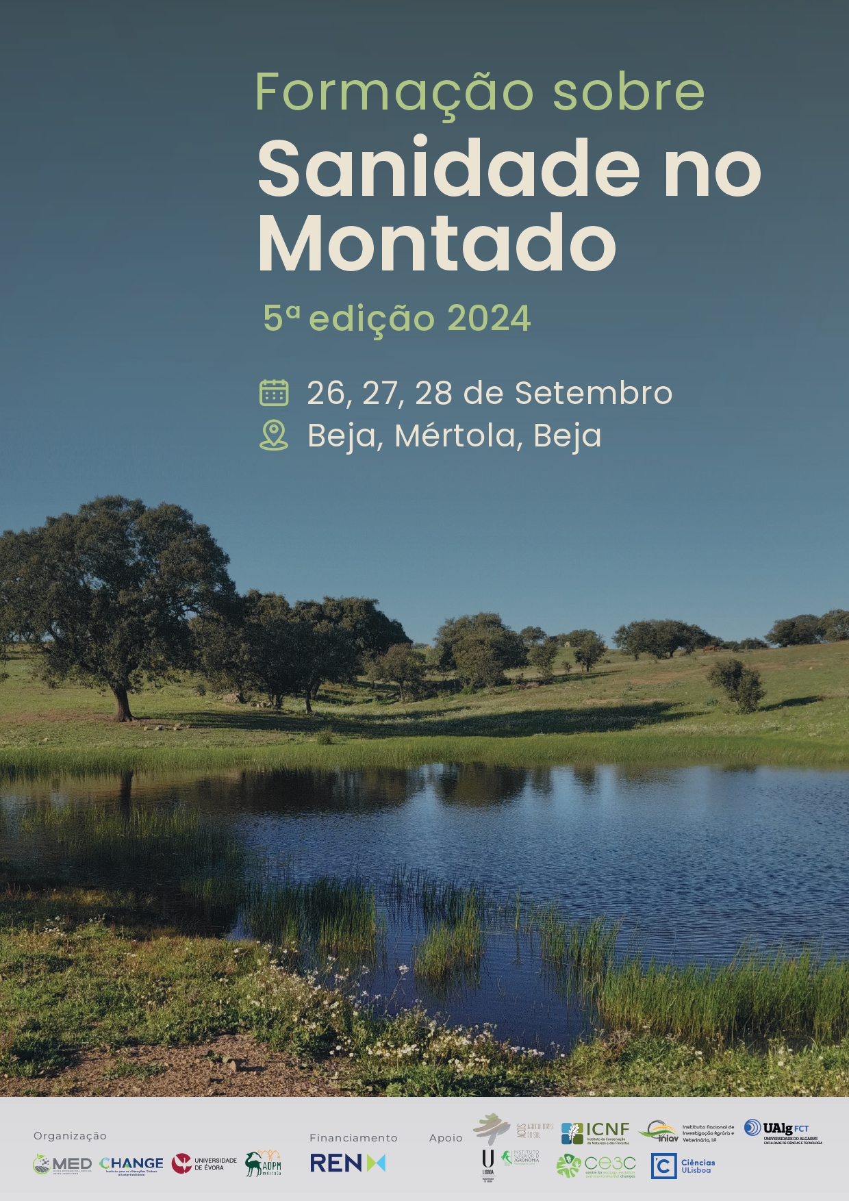 Esta edição da Formação sobre Sanidade no Montado é financiada pelo Prémio AGIR 2023 da REN e tem o apoio de: INIAV – Instituto Nacional de Investigação Agrária e Veterinária, I.P.; UALG – Universidade do Algarve; ISA – Instituto Superior de Agronomia; CE3C – Centro de Ecologia, Evolução e Alterações Ambientais da Faculdade de Ciências da Universidade de Lisboa; ACOS – Associação de Agricultores do Sul; ICNF – Instituto da Conservação da Natureza e das Florestas. Inscrições e mais em informação em https://sanidadedomontado.uevora.pt/