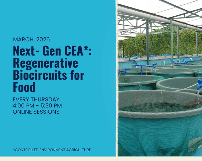 Este ciclo de conferências online destaca o potencial das tecnologias de agricultura em ambiente controlado, integrando soluções como a aquaponia e a biotecnologia de microalgas. O objetivo central é a valorização de recursos para promover sistemas produtivos que sejam simultaneamente mais resilientes, sustentáveis e circulares. Ao longo de três sessões temáticas, o evento reunirá especialistas internacionais para promover o diálogo entre a investigação científica, a inovação tecnológica e a sua aplicação prática no terreno.