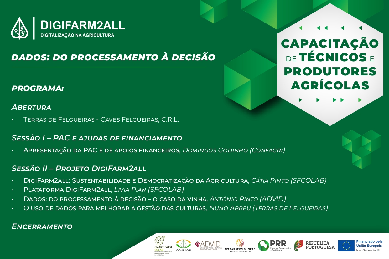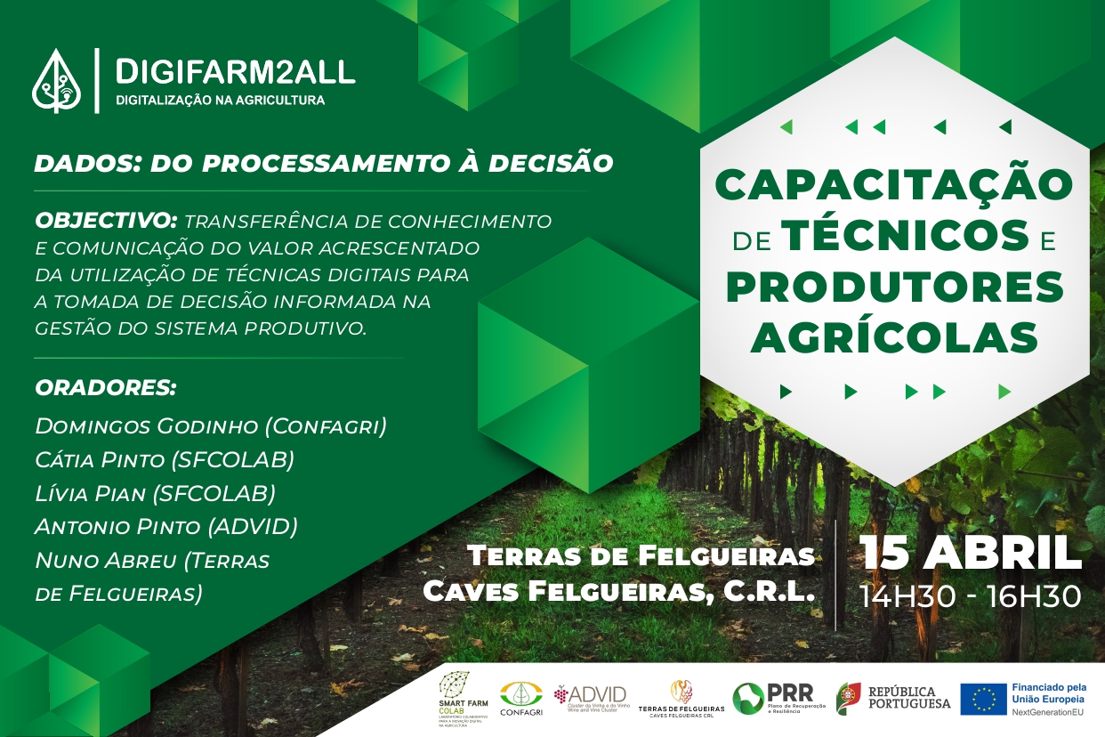 O Smart Farm Colab irá realizar, a 15 de abril, uma ação de capacitação de Técnicos e Produtores Agrícolas sob o tema “Dados: do processamento à decisão”, que decorre no âmbito do projeto DigiFarm2all.