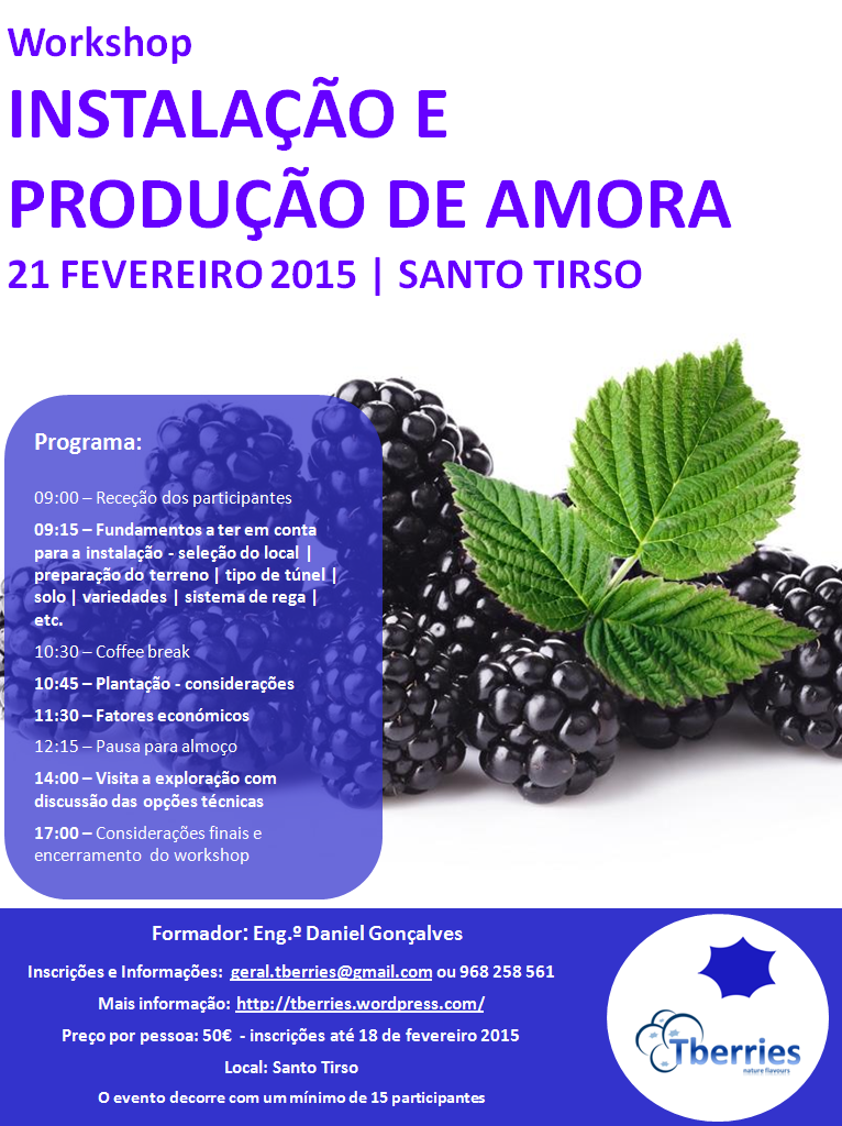 Irá decorrer no próximo dia 21 de fevereiro de 2015, em Santo Tirso, o workshop Instalação e Produção de Amora.