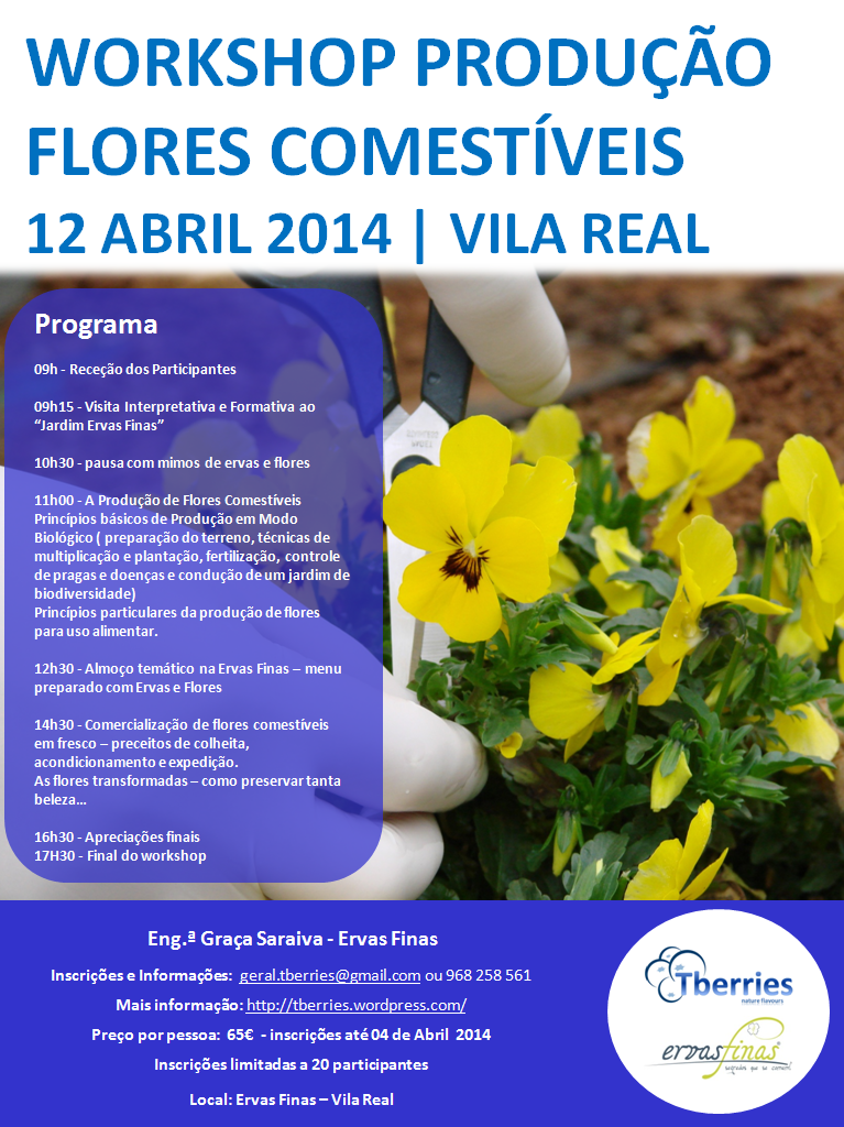 Irá realizar-se no próximo dia 12 de abril, o Workshop – PRODUÇÃO DE FLORES COMESTÍVEIS,